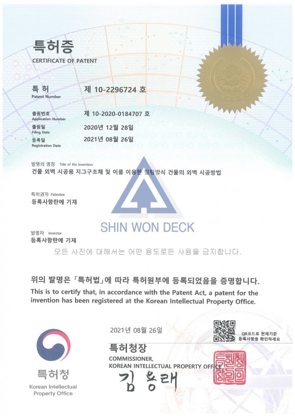 특허증 | 건물 외벽 시공용 지그구조체 및 이를 이용한 틸팅방식 건물의 외벽 시공방법 페이지 정보 작성자 최고관리자 작성일24-04-12 09:27 조회327회 댓글0건 목록 본문 건물 외벽 시공용 지그구조체 및 이를 이용한 틸팅방식 건물의 외벽 시공방법 특허증 입니다. 목록