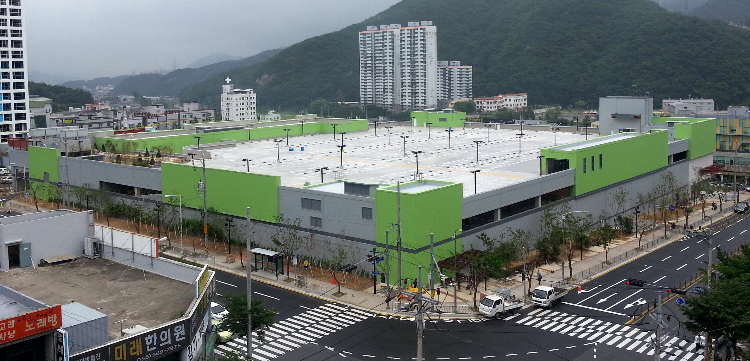 양산 트레이더스 신축현장 중 외벽판넬공사